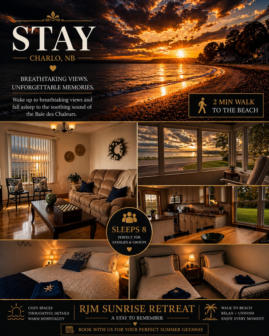 Welcome to this newly renovated 2 bedroom house in the beautiful Restigouche area. A perfect home to host a family, group of friends or a simple business getaway. Relax while traveling for work or for a fun vacation. Ideally located close to Sugarloaf Provincial Park, Restigouche River, beaches and trails, regional hospital, near snowmobile access and more.