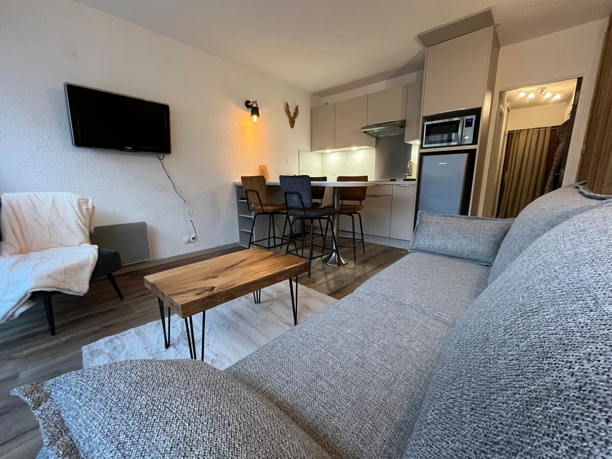 Charming studio with 9 m2 terrace with mountain view, located on the 1st floor of the ROYAL MILAN residence (rated 3 stars). Residence refurbished in 2017, ideally located in the village (thermal district/200 m from the cable cars). Numerous common areas: cozy lounge, fireplace, pool table, foosball table, games area, small fitness room, sauna open during reception hours, outdoor swimming pool (June 16/September 17). In the basement: coin-operated laundry with dryer, ski locker, bike room.