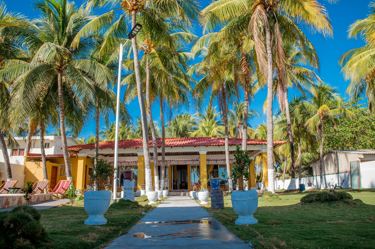 🌴Relax: The perfect Bedrooms feature blackout curtains, air conditioning and comfortable bedding for a restful sleep. 🍽️Fully equipped kitchen: Perfect for preparing your favorite meals, including an oven, stove, coffee maker, utensils and basic spices. 🌊Outdoor area: Direct beach access just 15 steps away, practically at your doorstep, a shared pool, and an outdoor shower. Ideal for families and groups seeking a perfect coastal experience.