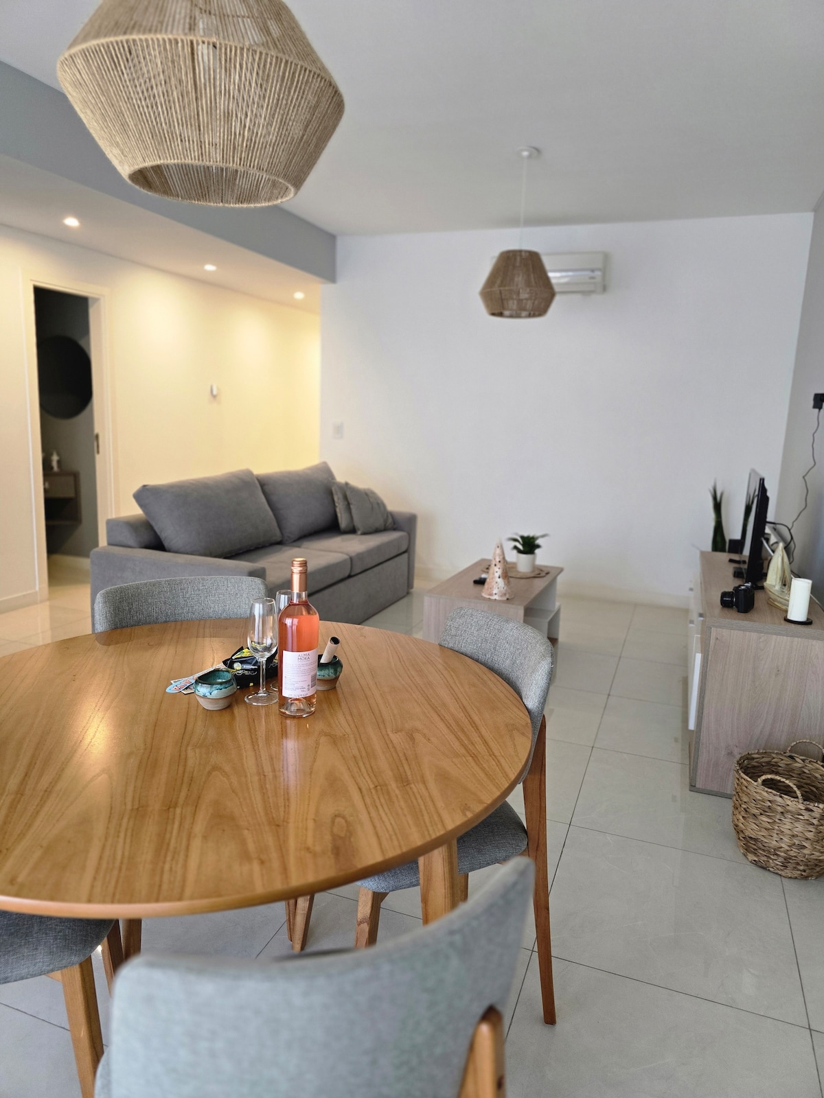 Enjoy this brand new apartment, just one and a half blocks from the sea in Playas de La Perla. With 1 double bed, 1 sofa bed with a rollaway bed, it is perfect for couples, small groups or families. The space is modern, bright and well ventilated. The living room has a 50" Android Led TV and a table for 4 people. The kitchen is fully stocked and the bathroom is modern. Close to restaurants, shops, and local attractions. Book now and enjoy a memorable stay!