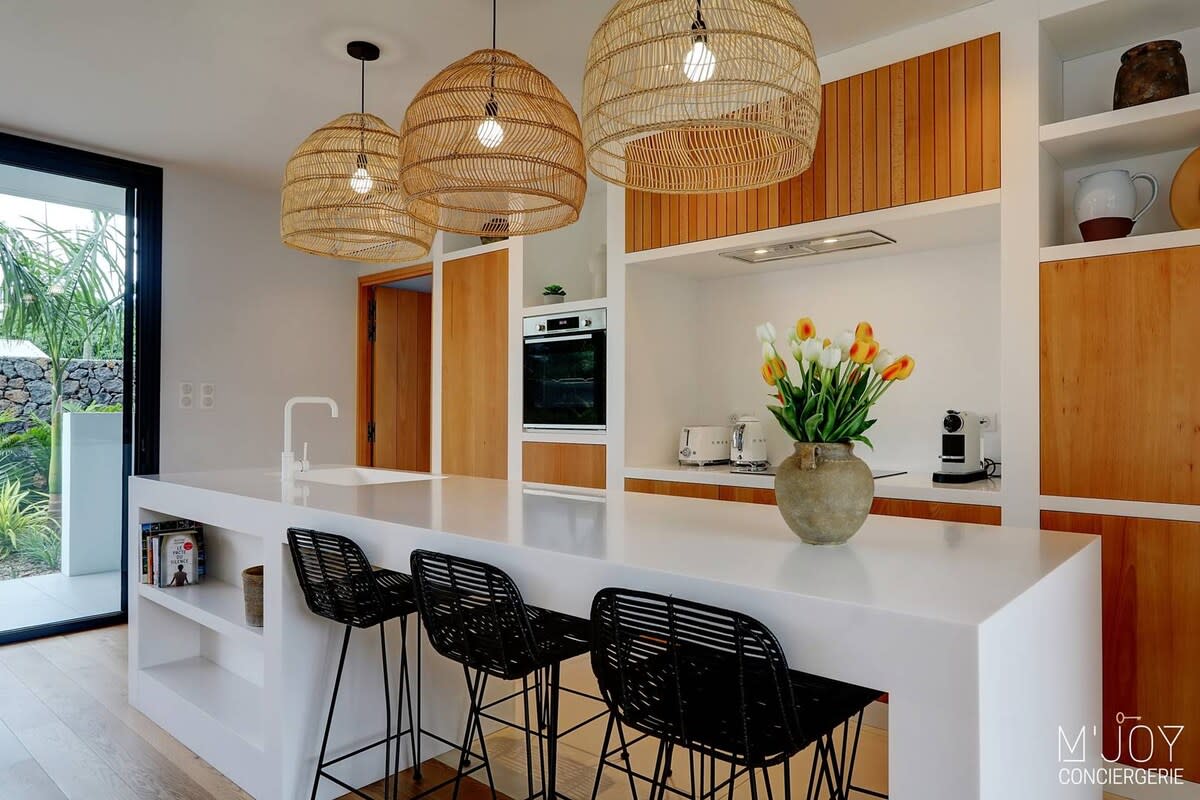La Villa de Marie is an exceptional villa located in Ravine Des Cabris, in the south of Reunion Island. Both luxurious and refined, it has been designed to provide you with maximum comfort during your stay: 3 air-conditioned suites equipped with a bathroom and a dressing room, a large swimming pool heated from May to October, a huge bioclimatic pergola, an electric car charging station...