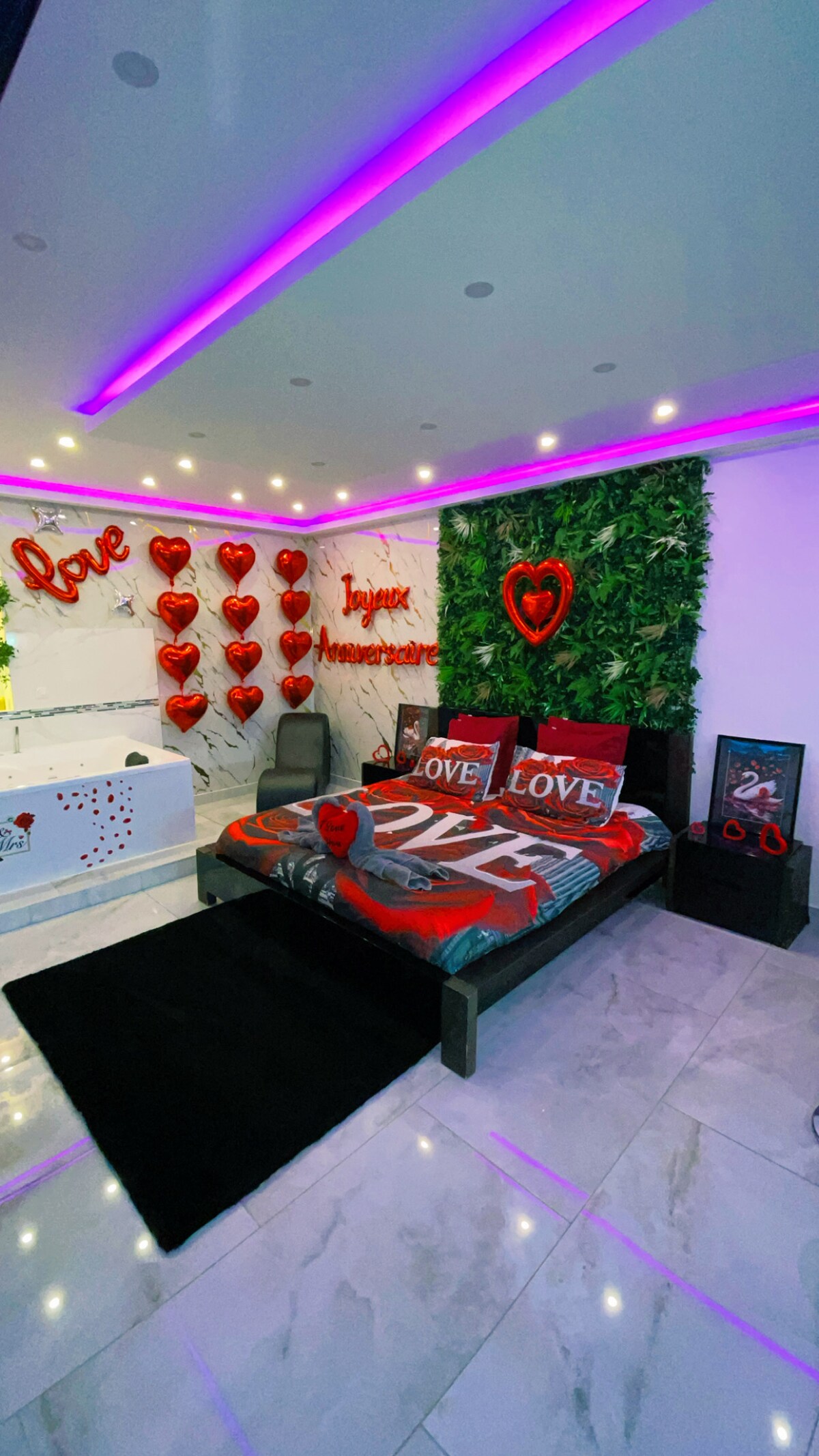 Appartement d’exception entièrement neuf, imaginé par un grand designer. Profitez d’équipements haut de gamme : toilettes japonaises, immense jacuzzi balnéo 2 places ultra-moderne et chambre parentale spectaculaire avec dôme ouvert sur la salle de bain. Grand salon avec TV, ambiance chic et chaleureuse, et superbe terrasse extérieure pour se détendre. Une expérience unique, moderne et raffinée.