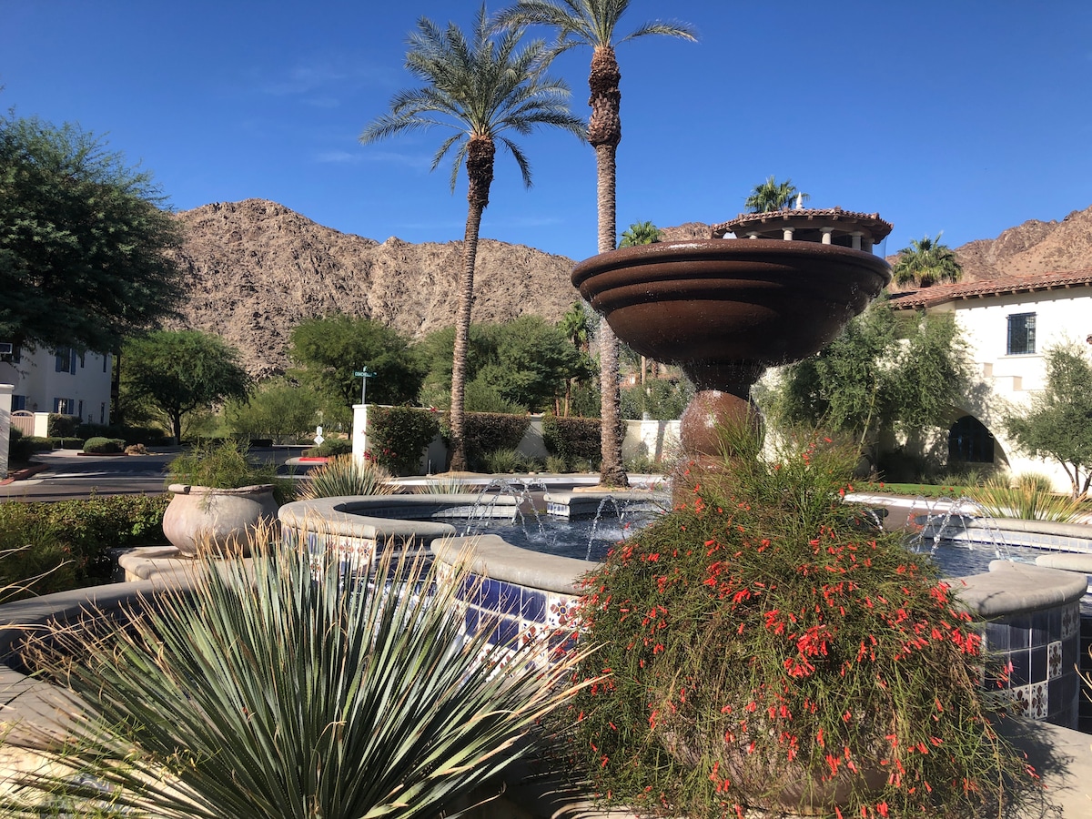 Unwind in this quaint, perfectly-located studio with fireplace located next to the beautiful blue paseo fountain and a 90-second walk to the main pool & gym. The hosts are hotel executives and have outfitted this villa like a LUXURY HOTEL. Sip on a cup of Keurig coffee in the morning and stroll around the picturesque grounds at the base of the Santa Rosa mountains or take a short walk to the Waldorf Astoria La Quinta Resort next door for some great dining options.