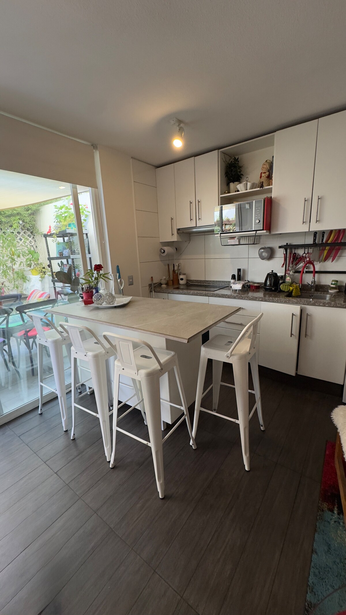Te encantará este departamento por su estilo, comodidad y ubicación. Es un espacio acogedor, con jardín privado, terraza con parrilla y muebles de exterior. Todo está pensado para tu bienestar: cama cómoda, sofá cama premium, cocina equipada, lavadora, microondas y más. La Reina es una comuna tranquila y conectada, con parques, metro, restaurantes y comercios. Estoy siempre disponible para ayudarte y hacer tu estadía inolvidable.
