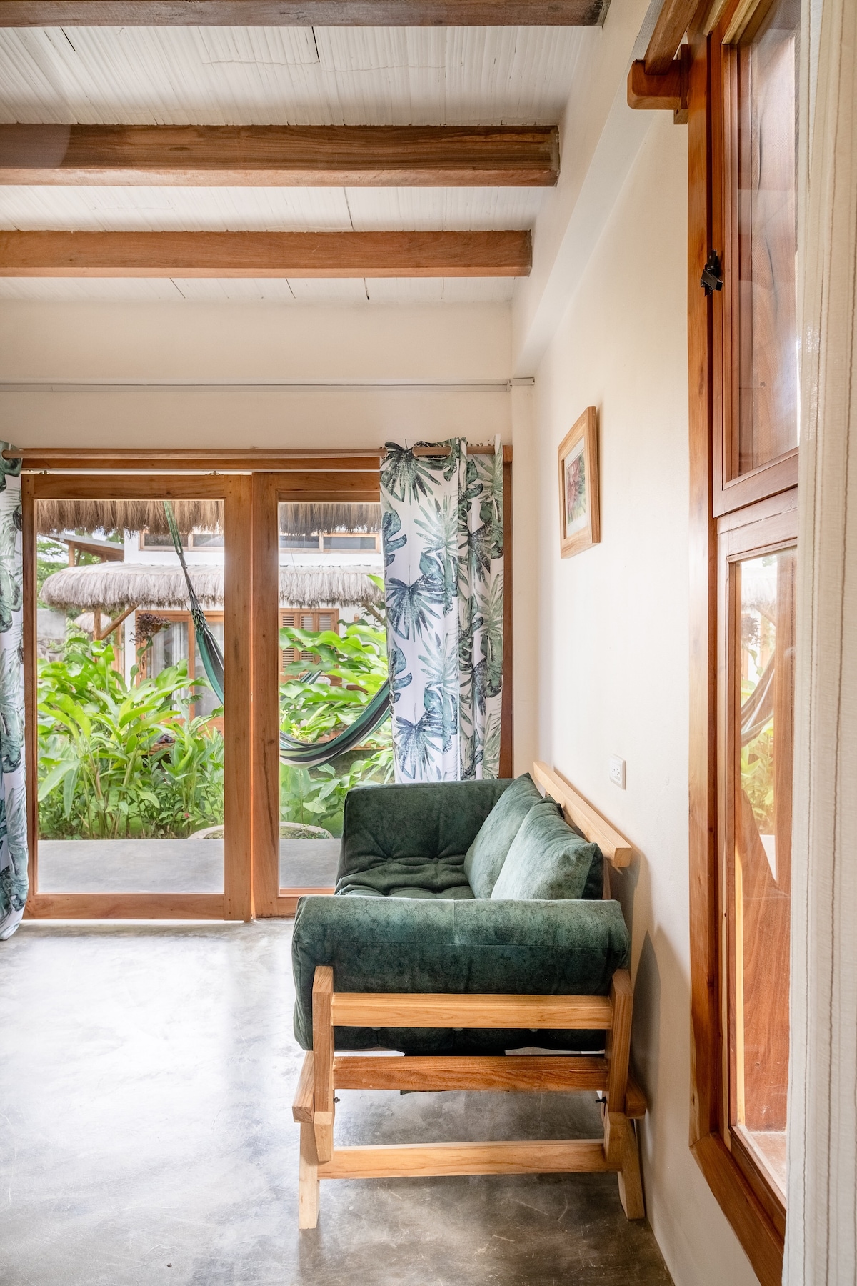 La Suite Yacu rodeada de una vegetación tropical y vista al mar recargará tu alma! Cómoda y espaciosa, 1 cama queen size, 1 cama individual, cocina equipada, baño completo, wifi y acceso a la playa. Ideal para pasar unos días románticos en pareja y amantes de la naturaleza salvaje, te permitirá explorar las joyas que se encuentran en la Ruta del Spondylus. *Clases personalizadas de yoga y surf, bicicletas, snorqueling, paseos en bote, trekking, transporte al aeropuerto y más.