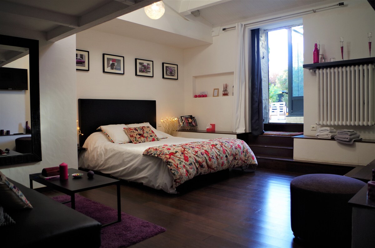 This trendy spot offers lots of charming details. 200 m from the village center and shops, 800 m from the beaches and the thalasso center, in a quiet alley, spacious fully independent guest room facing south opening onto a small private garden and an exotic wooden terrace. Independent access. Amenities: Wi-Fi; microwave oven; fridge. Service: breakfast included in the package. Pets not allowed. Minimum stay: 4 nights.