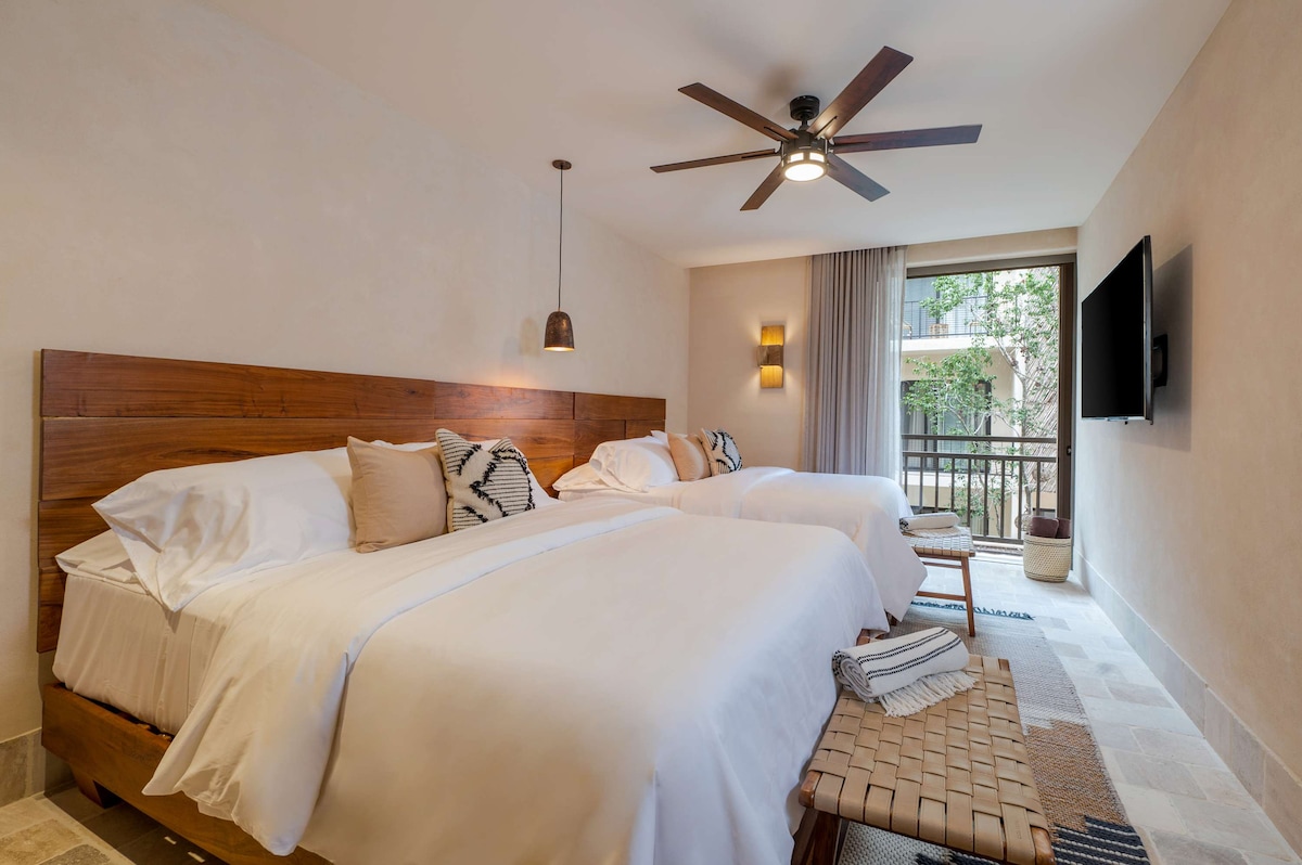 Relax and recharge in this stylish 2-bedroom oasis at the exclusive Tao Tulum complex in Aldea Zama — a peaceful jungle enclave just minutes from the beach and Tulum’s best restaurants. 🌊 Large Pool + Jacuzzi + Grill Area. 🛋 Spacious, modern interiors with local design touches. 🌿 Eco-friendly A/C system (Sensibo). 🍳 Fully equipped kitchen + balcony for morning coffee. 🏋️♀️ Access to gym + two community pools.