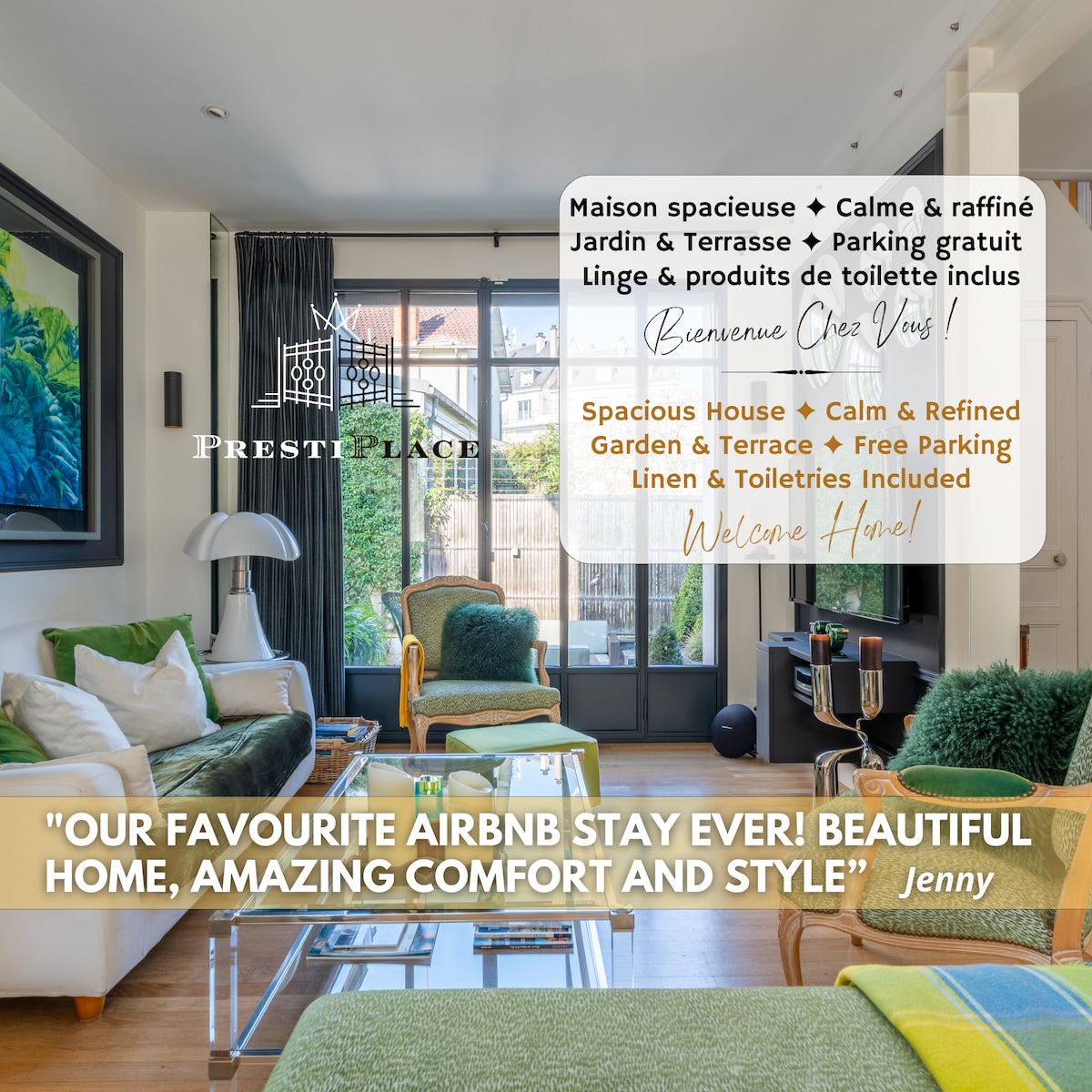 A charming 1950s mansion in a splendid landscaped and wooded park, in the heart of Touraine, with jacuzzi access. It consists of two bedrooms equipped with TEMPUR memory foam mattresses (including a King-Sixteen bed), a bathroom, an equipped kitchen, a living-dining room and a TV room. A terrace equipped with sun loungers and dining tables will seduce you. All close to all shops and three minutes from the historic center of Tours.
