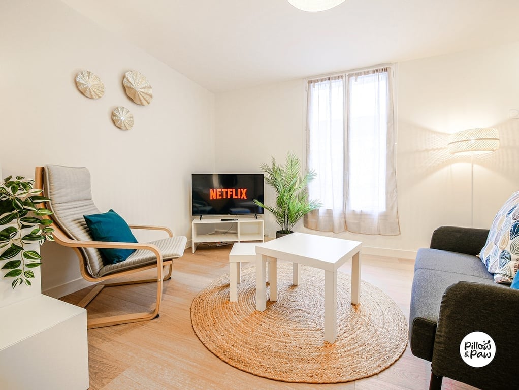 Welcome to our spacious T2 (60 m2) on the 1st floor of a peaceful building in the very center of Tours! Ideally located in the heart of the historic center, our fully equipped and refurbished accommodation offers a unique experience. - Wifi / Nespresso machine / Washing machine / Dishwasher - Bath & bed linen provided - Work room - Place Plumereau (1-min walk), Rue Nationale (3-min walk), Train station (15-min walk) - 100% self check-in and checkout All you have to do is put your bags down!