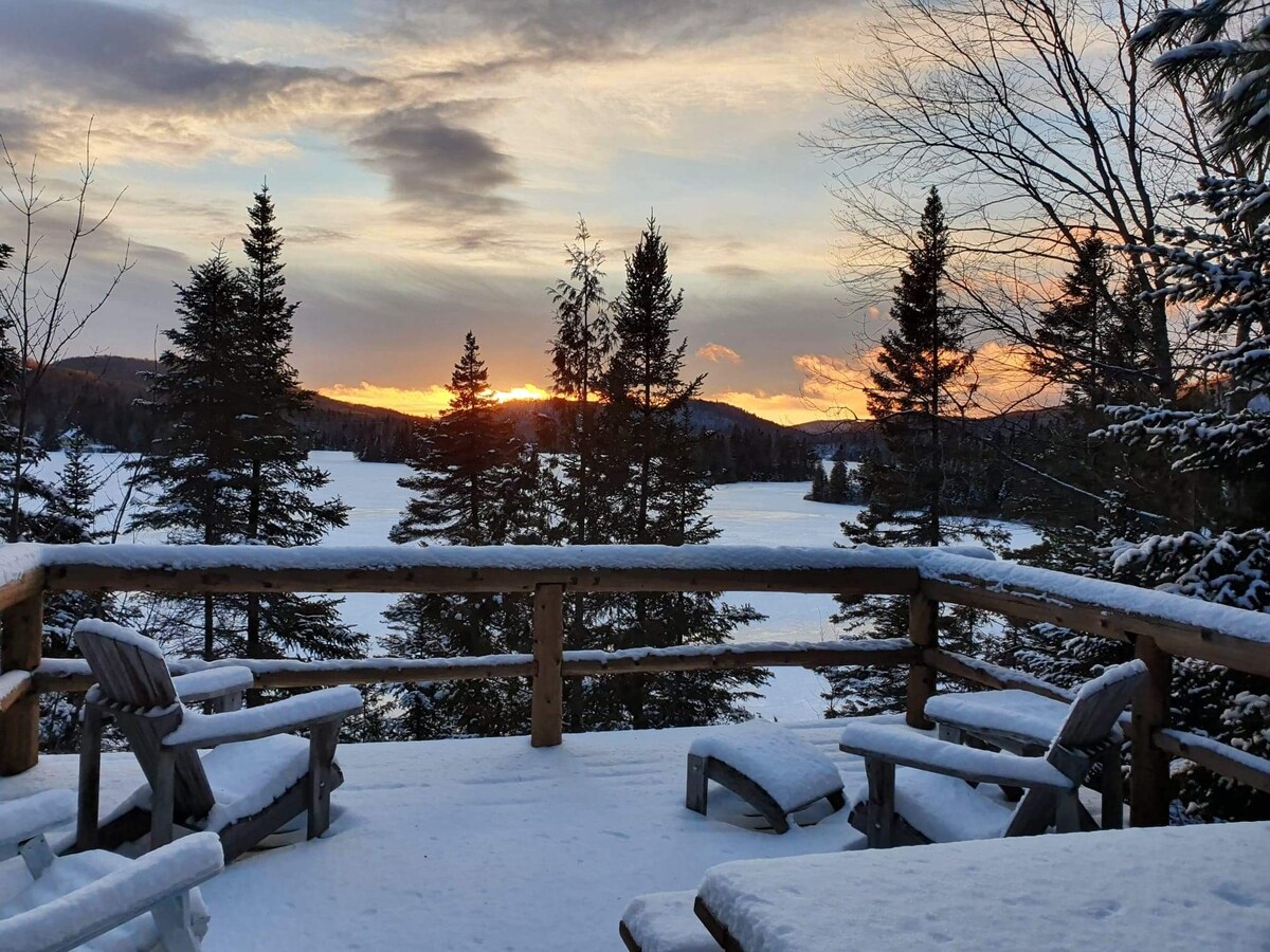 Unique haven of peace with breathtaking views! Located on a huge 100-acre estate with no nearby neighbors! Peace and tranquility guaranteed. Dogs accepted on condition until June 15. Dogs not allowed in high season. Cross-country skiing, snowshoeing and hiking trails on the doorstep. Spa with breathtaking views! In winter, a 4x4 vehicle is required to drive up the road to the chalet. THERE ARE CAMERAS ON THE PROPERTY Dogs welcome before June 15th + fees (no dogs in pick season). CITQ #30336