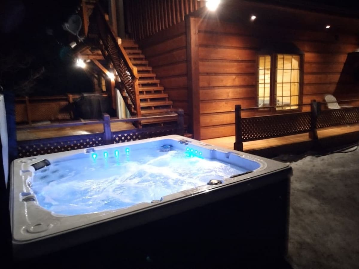 This cottage is surrounded by trees, ideal for anyone looking for a private and peaceful place to unwind in nature. For animal lovers, you can ask to come meet our horses, chickens and alpacas on a guided visit to our little farm. You will be a short drive away from the Mt-Tremblant ski station (30min), Mt-Blanc (10min) and the Mt-Tremblant National Parc. A private hot tub & BBQ will be available (summer & winter), as well as a wood stove to stay cosy during the colder months!