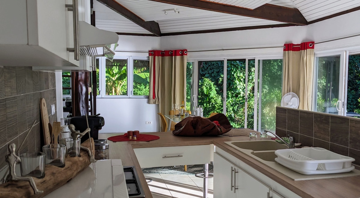 Private home on hillside overlooking Opunohu Bay Two Bedroom 1.5 Bathroom Fully equipped kitchen renovated in 2025 Living room Wrap around deck with patio furniture and 2 loungers Bbq Washer and Dryer Home is ideal for couples, solo adventurers, business travelers, and families. **Moorea charges a city tax of .60xpf per PERSON per NIGHT. This is not part of the nightly rate and will need to be collected in cash upon arrival**