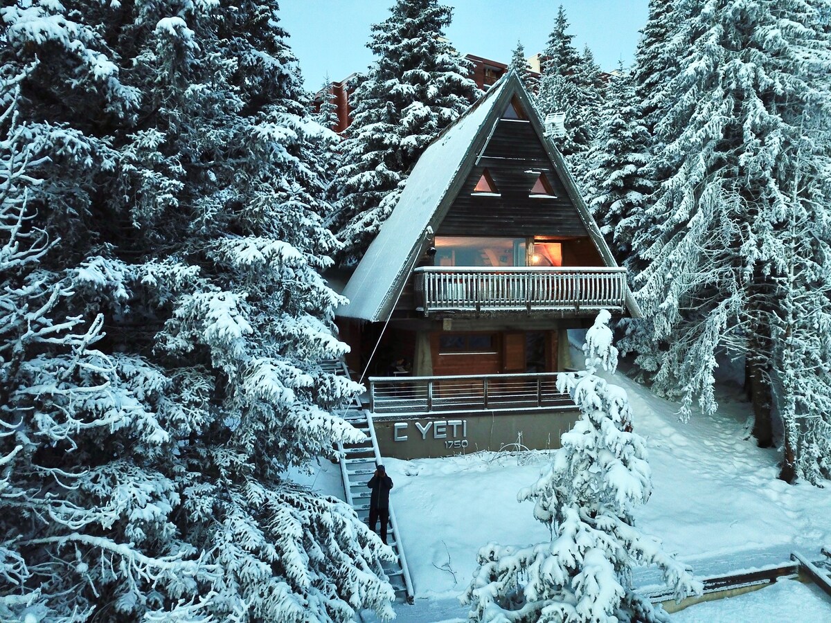 Magnifique 2 pièces entièrement rénové au rdc d'un chalet Delta - Expérience et emplacement unique . Départ et retour skis aux pieds . 4 couchages confort 1 grand lit double en 140 2 lits superposés en 90 1 salon/cuisine équipée 1 salle d'eau 1 WC séparé Terrasse Accès au ski room du chalet Cuisine extérieure avec plancha, friteuse.....