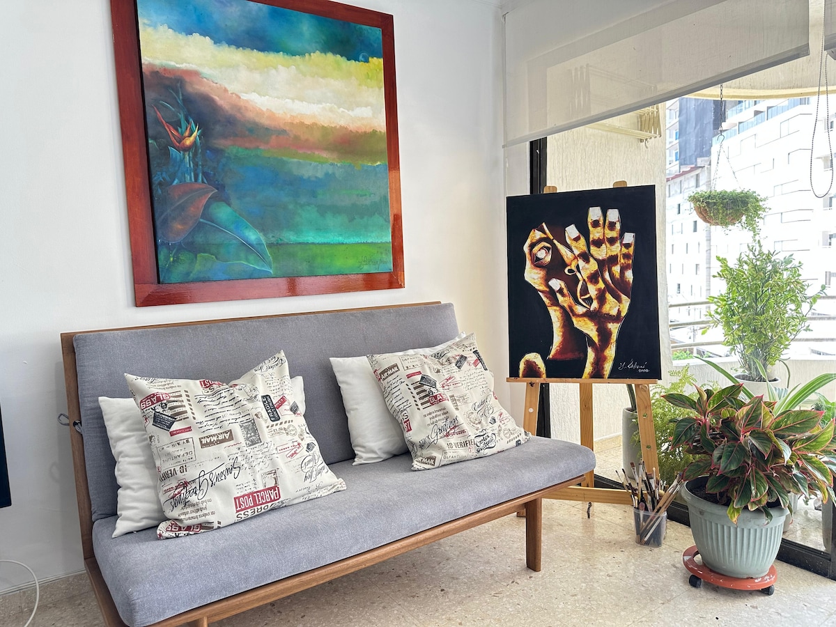 This unique place has a style all its own. If you’re looking for an unique Cartagena experience this is the place to stay. This condo is located in Marbella, upcoming and very central area, near the old city and just a short walk to the beach. Here you will be able to enjoy stunning views of the ocean and the coast line. There is two master bedrooms with en-suite bath, both with king size beds. Open kitchen, living room, dining room area. The apartment is a high floor duplex, two level condo.