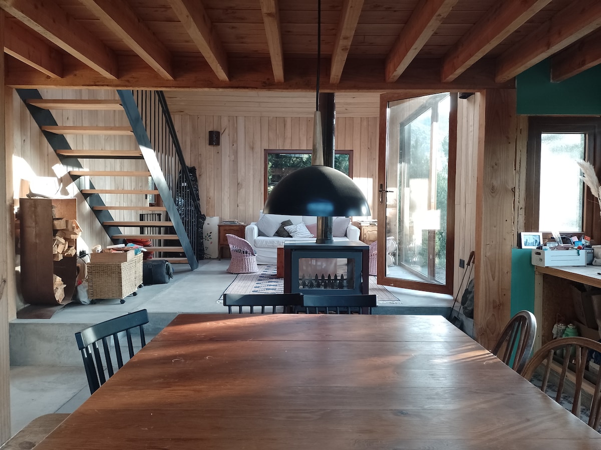 Relax at our cozy mountain home and be blown away by the gorgeous, uninterrupted views of incredible Patagonian landscapes. A peaceful & unique place to stay with one double bedroom and one twin room with large bunk beds - perfect for a family. Enjoy amazing sunrises and sunsets on our 16 metre deck, surrounded by nature, with the occasional condor swirling overhead. Less than 10 minutes from the ruta 40, and 20 minutes from downtown San Martin de los Andes.