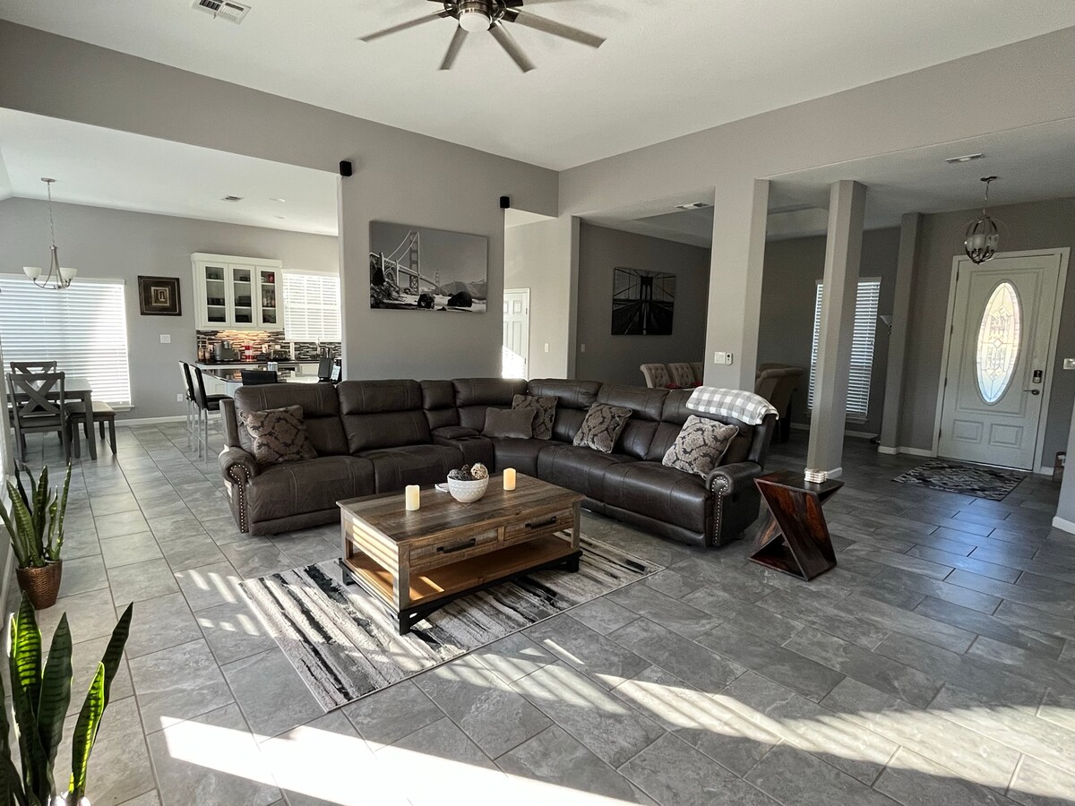 Escape to our captivating pre-wedding retreat with an indoor swing, alluring double shower, and stunning backyard patio. We are 10 min from Villa Antonia! Our fully equipped kitchen features a huge island for meal prep and entertaining. Retreat to any of the bedrooms with 100% cotton sheets and duvets. Equipped with private amenities like hot tub, and private garden. Pack-and-play, high chair and air mattress available on-site. Nearby attractions like winery, state parks, and hiking trail!