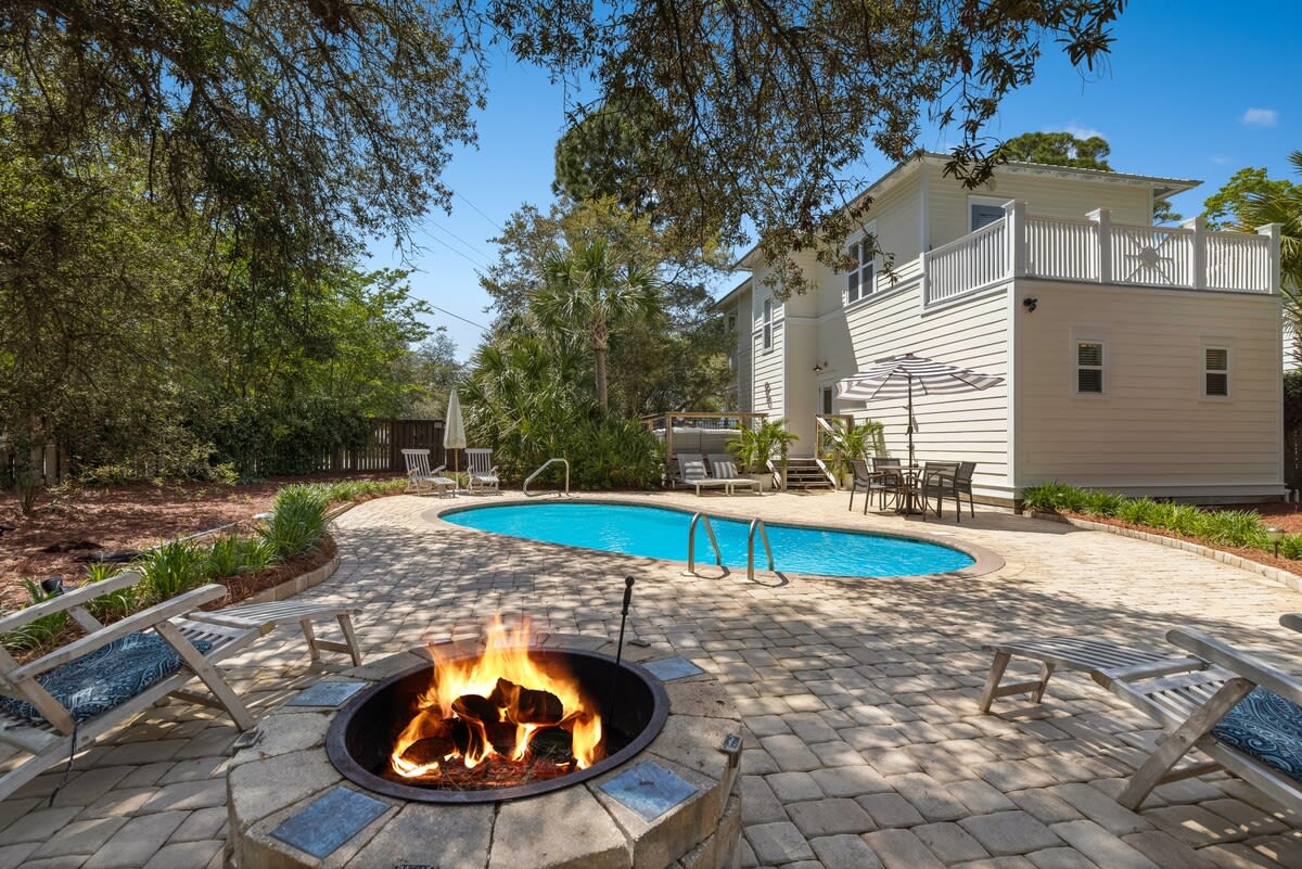 Steps from Seagrove Beach's pristine sands, our beach retreat offers the perfect blend of elegance and family comfort. Featuring stylishly appointed bedrooms and a living room with a sleeper sofa. A fully-equipped kitchen and grill for meal preparations. After the beach, rinse off in outdoor shower then enjoy the pool! Nestled in a private cul-de-sac, our cottage offers tranquility within walking distance to local eateries ensuring your family's seaside memories will be effortlessly created.