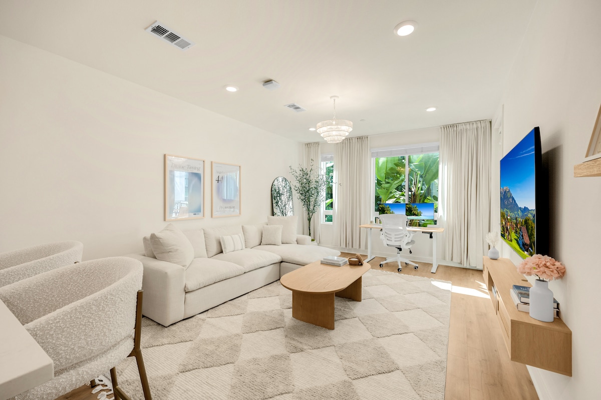 Retreat to the stylish 1 bed 1 Bath gem, and enjoy a memorable trip in central Irvine. 5-15 minutes from: ->John Wayne Airport ->Disneyland ->UCI ->Newport Beach ->South Coast Plaza ->Irvine Spectrum ->Fashion Island ->and more.. Our lovely gem will be waiting when you decide it's time to relax. ✔ King Bedroom ✔ 2x Smart TVs ✔ Ultra High-Speed Wi-Fi ✔ Washer/Dryer (in-unit)