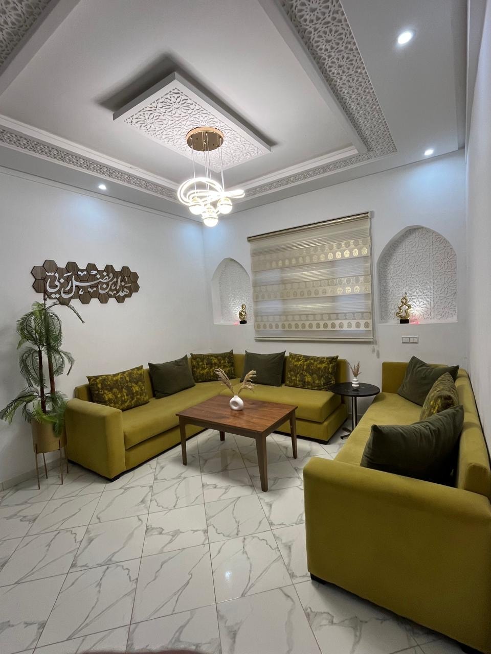 Un logement élégant et moderne au centre de la ville , parfait pour un séjour urbain alliant confort et accessibilité. à proximité de l’Hôtel Golden Tulip Farah, de la clinique internationale Agdital et de l’ENSA. Il offre une ambiance décontractée, un extérieur lumineux et un design contemporain. ✨ Points clés : - Emplacement stratégique en centre-ville. - À 2 km du complexe sportif du Phosphate et de la gare.