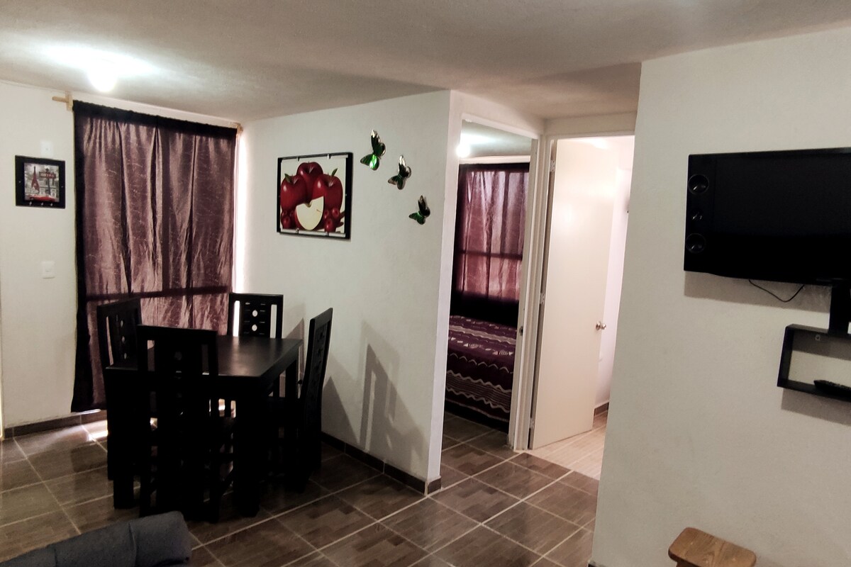 Comfortable and modern apartment in Real del Lago, just 20 minutes from Guadalajara International Airport and 15 minutes from the VFG Arena. Perfect for travelers, concertgoers, or business stays. Fully equipped, with Wi-Fi, parking and surveillance. Close to Bodega Aurrerá, Oxxo, local shops and public transportation. Perfect for resting and enjoying your stay. Tourist places: Cajititlán 15 min, Chapala 30 min. Your temporary home close to everything!
