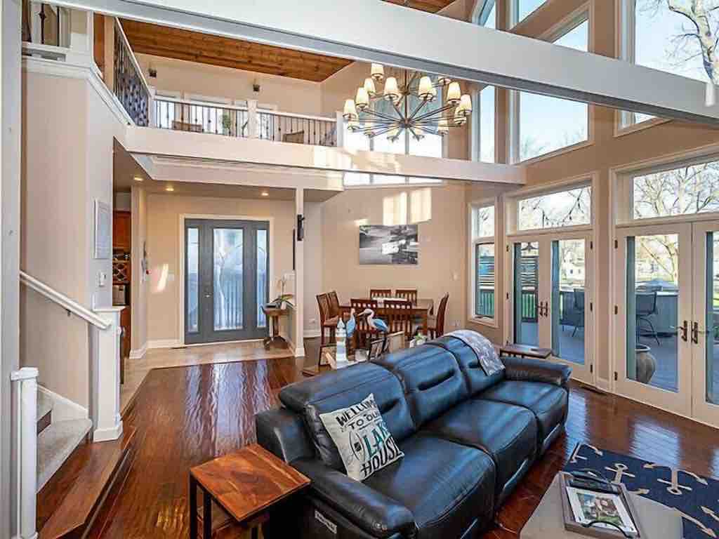 With panoramic views of the lake, you’ll love the stunning sunsets, private beach, pier, and kayaks. Experience outstanding fishing and walk to downtown for restaurants, bars, shopping, theater, and concerts in the park. Skiing at Wilmot/Vail is just a short drive away. Inside, unwind by two fireplaces, three TV screens, or play a game on the pool table. The large wet bar and expansive kitchen are perfect for gatherings, with additional space in the dining areas, private office, and gym.