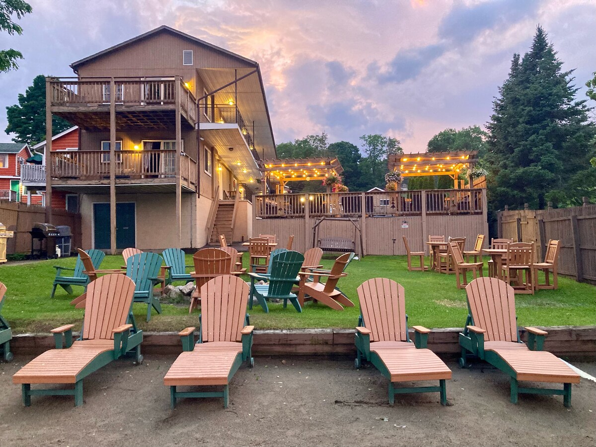 Perfect for families or groups traveling together, this spacious 2-bedroom, 2-bath suite comfortably sleeps up to 9—so everyone stays together without sacrificing space. Enjoy two full bathrooms, a full kitchen, and warm Adirondack style. Located at The Sundowner, you’re steps from the pool, hot tub, beach, and free kayaks & paddleboards, with the village just a short walk away. Ideal for guests who plan to spend their days on the lake and in town.