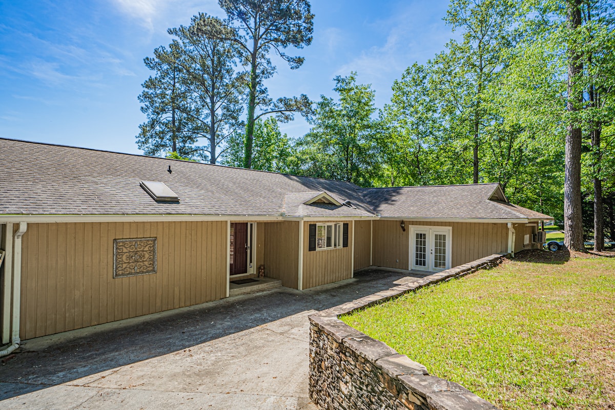 You'll love waking up in this peaceful lakefront Airbnb. 2 large flat TVs, 2 acres of lawn leading to fishing from the dock and boathouse on Lake Sinclair in Milledgeville, GA. Shopping and restaurants nearby. This is such a special place! We've left you fishing poles, our guests catch fish, often off our dock. Bring a boat or rent one at the Lake Sinclair Marina! Comfortably sleeps 6. 10 min drive to GCSU College.