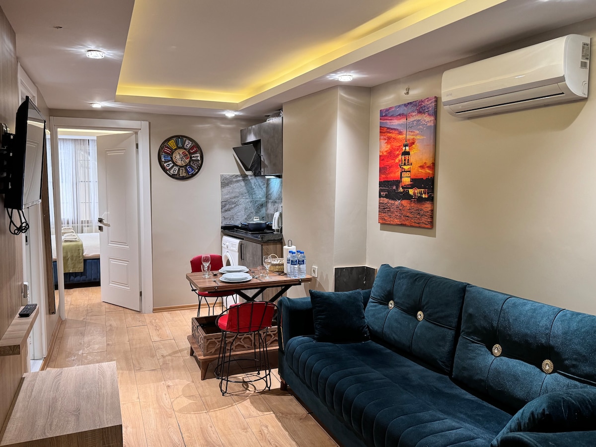 Private Studio Apartment, private bathroom & private entrance in the heart of the Sultanahmet Old City, just a min walk to all major historical sights Blue Sultanahmet Mosque & Hagia Sophia & Topkapı Palace & Underground Cistern and Sultanahmet Center.The apt is equipped with: *air-conditioning *free wifi*Flat Screen TV with satellite channels *orthopedic mattresses *mini size kitchen *dining table/chairs *iron & ironing board *hair dryer *towels, sheets and blankets, free cleaning.