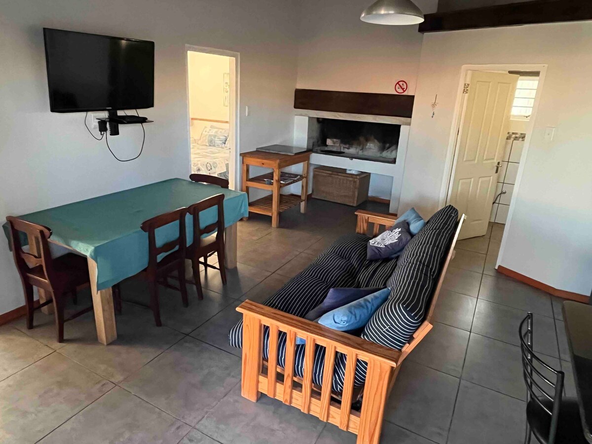 Relax with the whole family at this peaceful place to stay. Seaviews all around. Braai on the wooden deck and watch your children play on the beach. 3 Bedrooms, 1 bathroom, sleep 6. Dstv, free wi-fi, inside fireplace, microwave, gas top oven, dishwasher, fridge with freezer, nespresso machine (bring own pods). Inverter and battery backup for loadshedding.