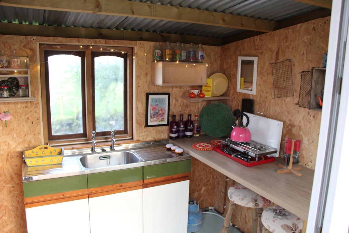 Ali's Little Woodland Wonder. A cosy shepherds hut that sleeps 2 adults (and a little one on request!). Situated in a 12 acre woodland with a vintage and retro feel. Located on our family run beef and sheep farm in the Yorkshire Dales. Well behaved pets welcome. Option to book an extra pitch for a camper van or tent when also using the Shepherds Hut to bring your friends for a night or two.