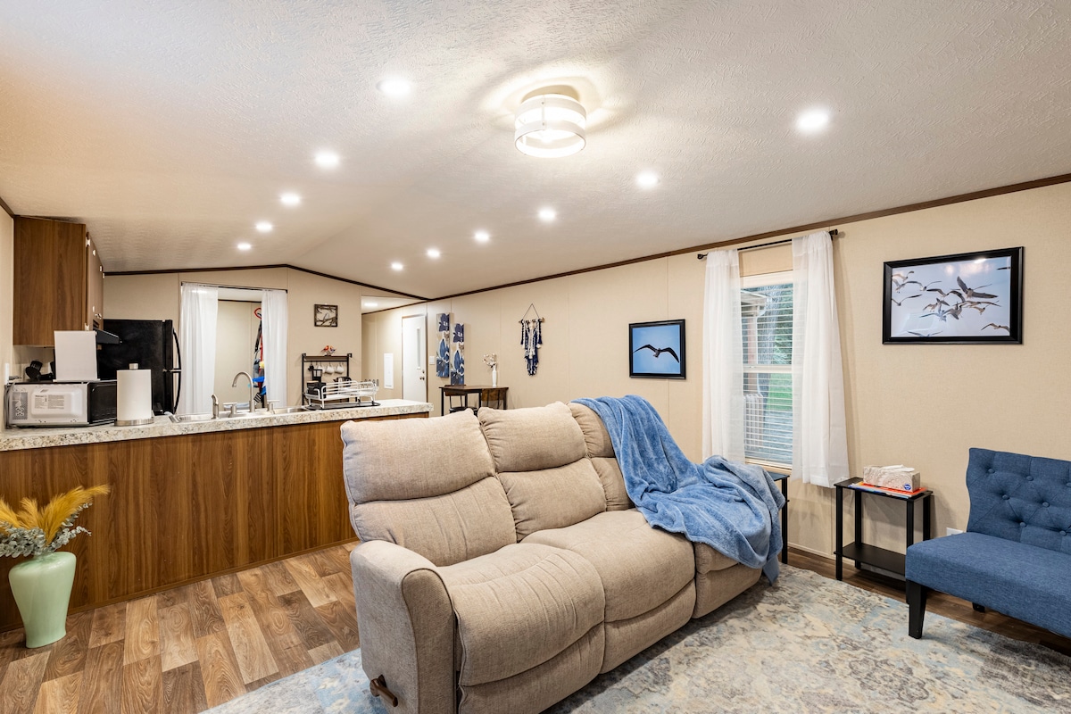 We tried to think of everything when we built these little cabins. These are a great size for one or two people. It has a full size bedroom with King size bed, full bathroom, complete laundry room, fully stocked kitchen and spacious living room. It's decorated in a light fun beach/coastal decor. It's just a happy place for you to relax and enjoy while you're here working or visiting friends.