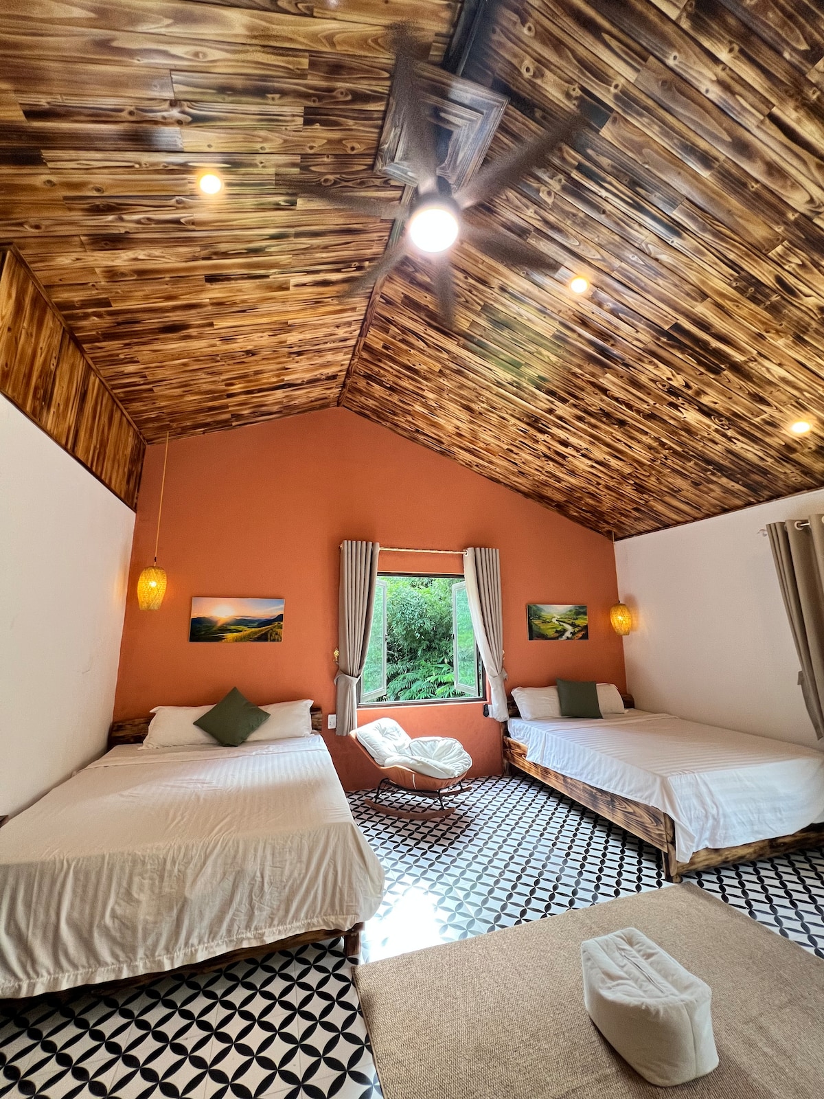 Touch the Peace in the Heart of the Mountains Nestled in the year-round cool climate, Giay Ethnic Bungalow is the perfect getaway for those seeking a truly healing retreat. Here, you’ll be welcomed with warm hospitality, savor authentic Giay cuisine rich in mountain flavors, and immerse yourself in a peaceful space far away from the hustle and bustle of daily life. Let the gentle breeze, cultural stories, and home-cooked meals of the Giay people create unforgettable memories for you.