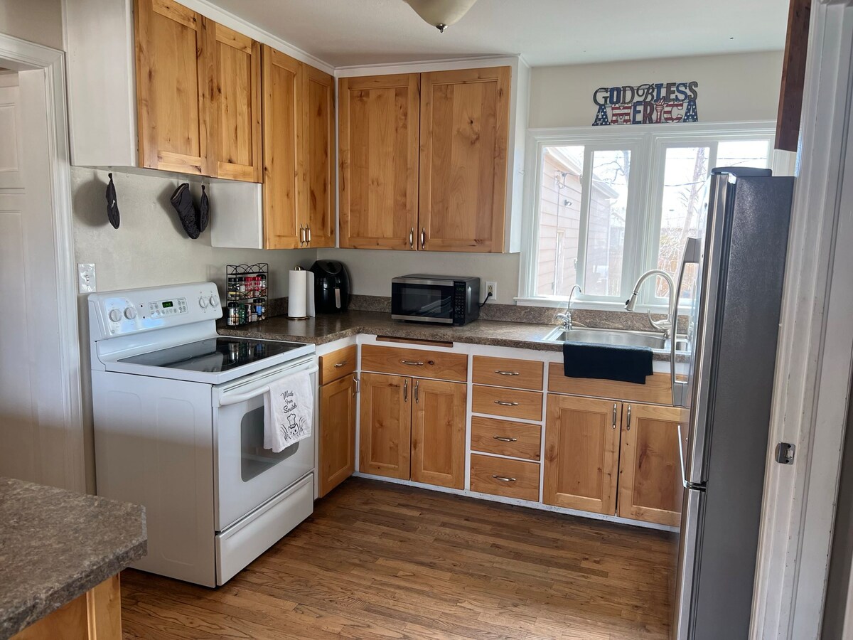 Enjoy your stay in this 1940s clean, cozy, charming, 2br, 800 sq ft cafe styled downstairs, private entrance location. One block from UW and Einstein Bagels M-F, 8-2, Sept-April. 4 min from downtown Laramie 7 min from a movie theatre & more dining. Smart TV with Netflix and Hulu accounts. Games available. The living room HEATING UNIT becomes HOT when in use and creates an environment not for crawling to 4 yrs old. NO SMOKING NO PETS on property. We do have a well behaved Aussie Doodle upstairs.