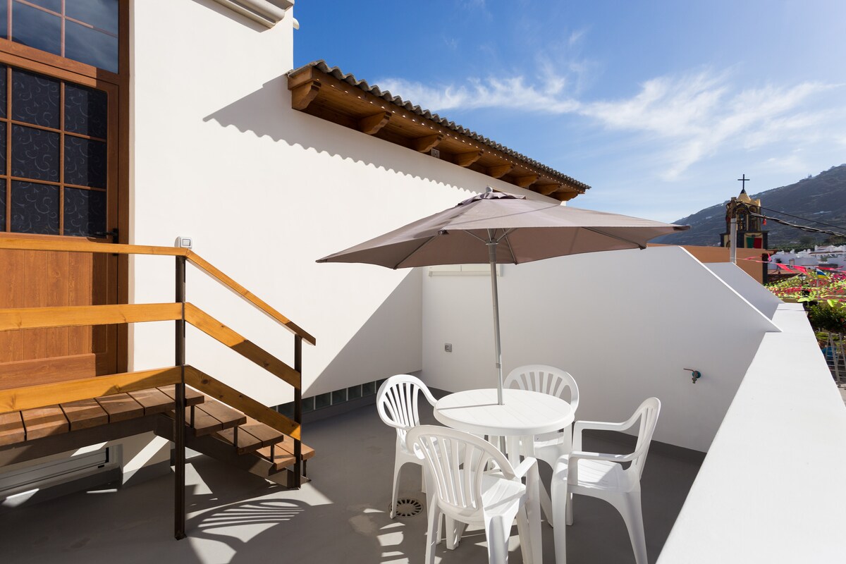 Bright and centrally located penthouse in a cozy and quiet village. On the same street there are a bank, pharmacy, post office, cafeteria, restaurant. A 5-minute walk to the natural pools and the Castle of San Miguel. Starting point of trails.
