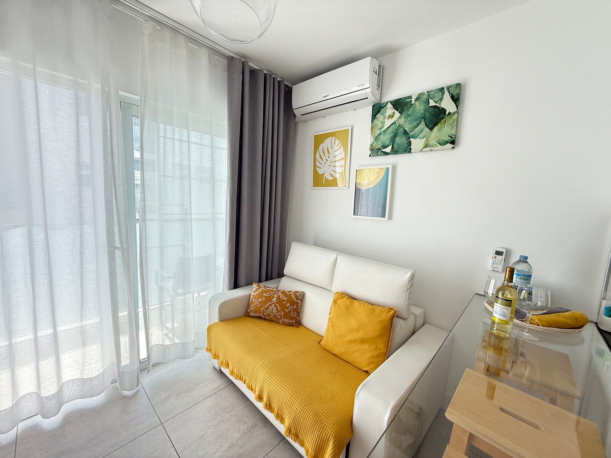 A cozy, fully-equipped apartment with beautiful ocean views located in a very quiet area with easy parking. The apartment includes basic items such as towels, shower gel, shampoo, hair dryer, kettle, coffee maker and toaster, as well as everything you need to enjoy a full breakfast: bread, coffee, jams, teas, sugar and seasonal fruit. And finally, we give our guests a bottle of champagne.