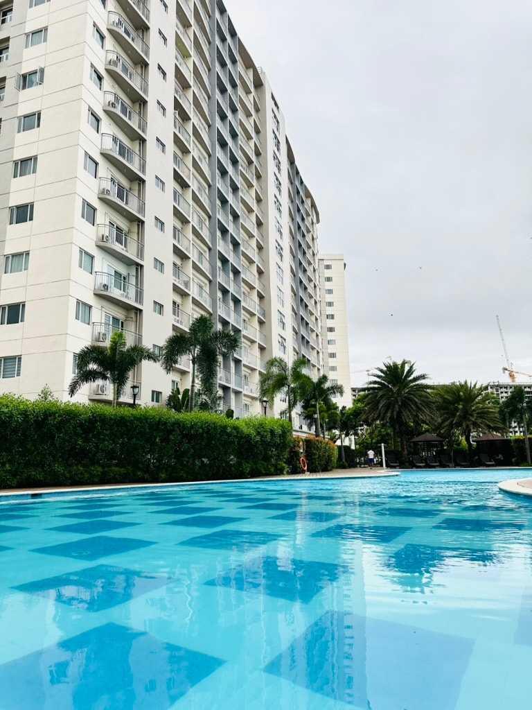A luxurious smart condo with cozy balcony, swimming pools, free WiFi, Netflix, Xbox, air purifier and keyless entry. Walking distance from mall and minutes away from airport. *Keyless Access *Xbox *50Mbps WiFi *Netflix & YouTube *43 inch Smart HDR Internet LED Sony TV & Sony Soundbar *Bose speaker *Air Purifier *2 hp inverter A/C *Ceiling Fan *Double bed w/memory foam mattress & luxury linnen *Hot & Cold Drinking Water Dispenser *Hot Shower *Washing Machine *Complete Kitchen! *28.19 sqm