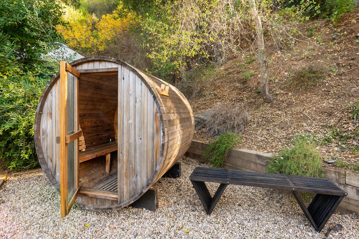 Experience this unique mountain loft, designed by a local Topanga artist, with 16' ceilings and views of the surrounding epic mountains. Enjoy a complimentary bottle of wine, our outdoor barrel steam sauna, and bring the kids or pets for hikes right outside the front door. Book an on-site massage or do a yoga session, watch movies on TVs in every room, or simply relax. Medley Ln offers some of the best views in all of Topanga.