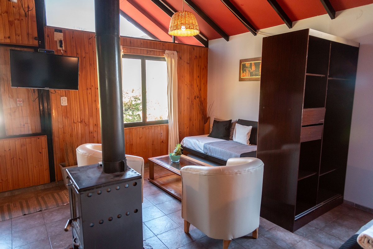 Cabaña totalmente equipada localizada en el corazón de la montaña. Especial para relajarse en la naturaleza, trabajar a distancia con WI-Fi de alta velocidad mientras tomas clases de Yoga, meditacion y entrenamiento funcional personalizado en nuestro espacio de bienestar. Pueden hacer caminatas consciente-mindfulness observacion de aves y fauna silvestre o salidas de aventura como cabalgatas , rafting, trekkings y disfrutar de la nieve en los meses de invierno..