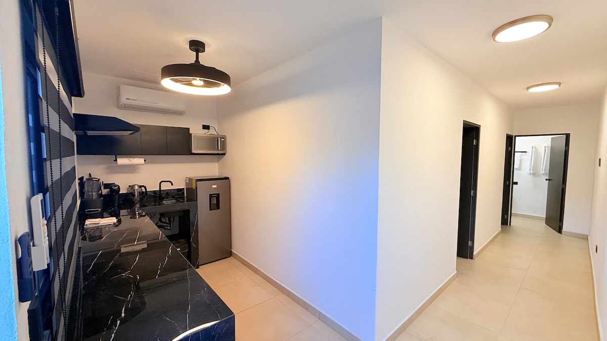 Departamento a 10 minutos del aeropuerto, estacionamiento cerrado y lavanderia gratis. 2 habitaciones: Camas queen Aire acondicionado Ventilador de techo Smart TV Mueble para abrir maletas Cocina: Parrilla de inducción Refrigerador Microondas Campana Tarja Licuadora Tetera Cafetera Nespresso(con 4 cápsulas) Sartenes y olla Vajilla Utensilios Cubiertos Aire acondionado Baño: Agua caliente Toallas Shampoo Acondicionador Jabón líquido corporal Secadora Plancha