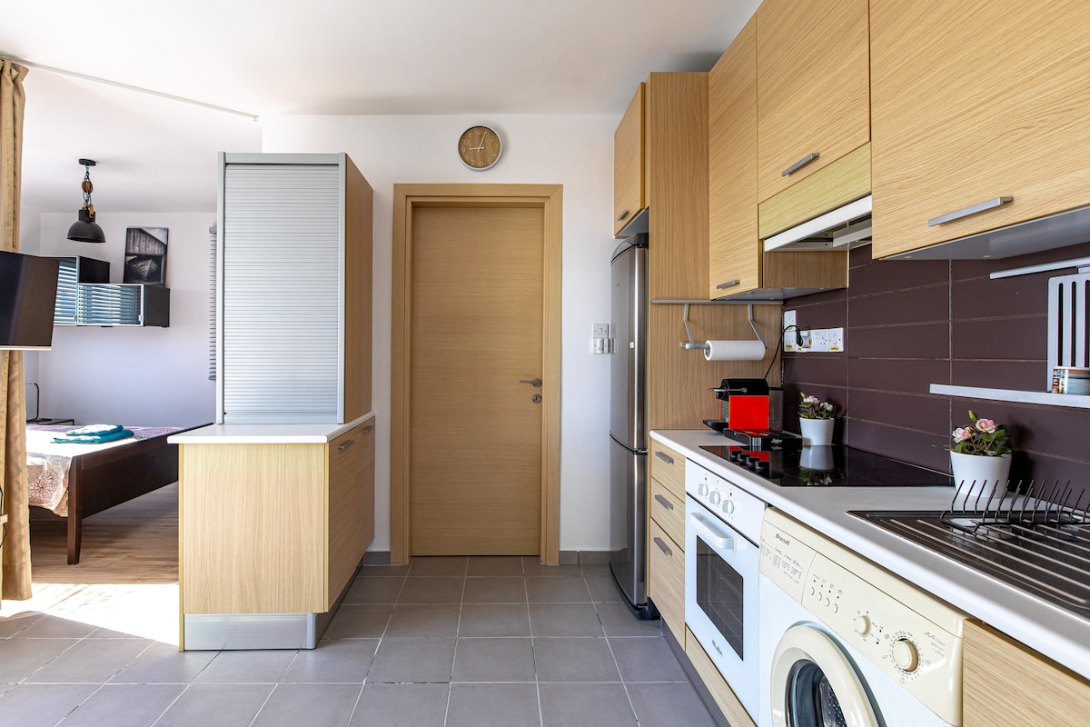 Stylish brand new 1-bedroom apartment in quiet area of Strovolos. It has sitting space with comfortable sofa and TV. There is fast wifi, A/C units and heaters. Bathroom with a shower and a spacious bedroom with TV as well. Kitchen and dining area with all the necessary amenities, includes an oven,toaster,kettle,coffee machine as well as washing machine, iron or hair dryer. The flat has covered parking. Walking distance to coffee shop, bakery, pharmacy..The city centre is few minutes away by car.