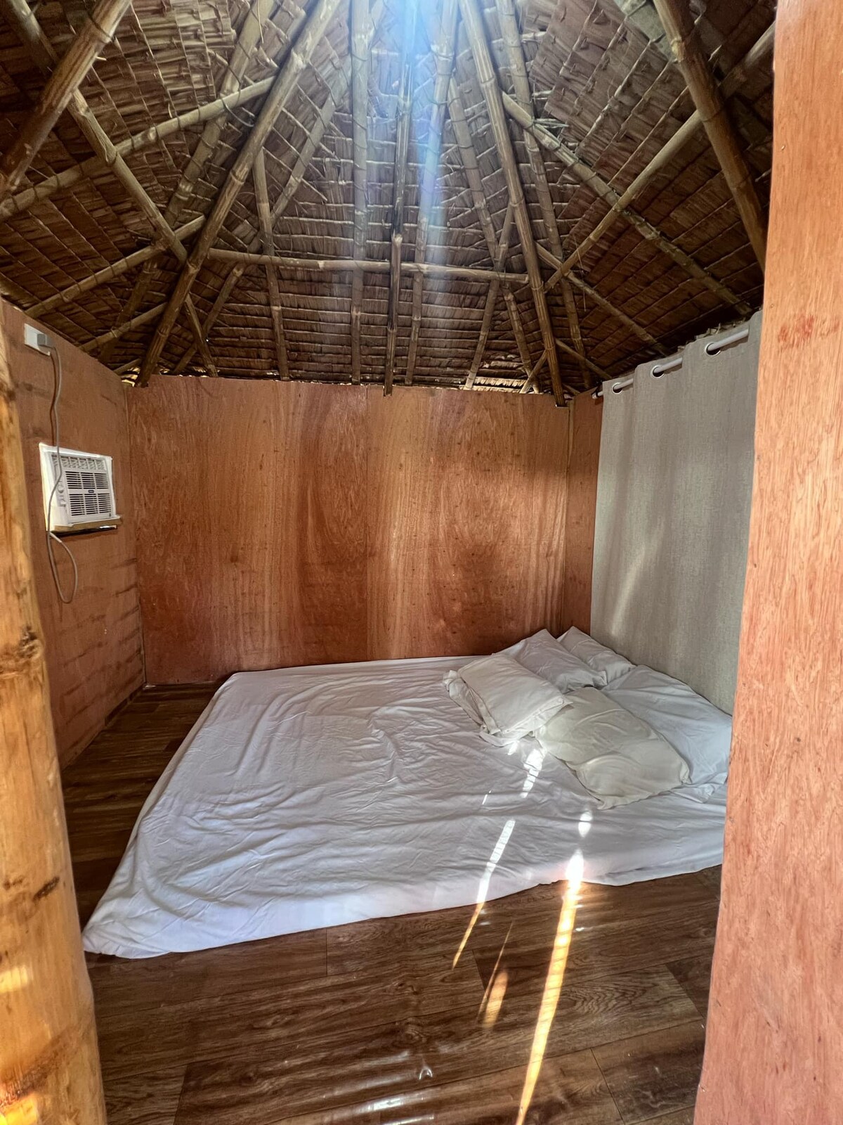 The beachfront cabin is located in Villa Eliza Ecofarm. Nestled in a coconut grove, you will have a sunrise view of the Panay mountain range, and a dramatic sunset view of Sulu Sea. The second floor bedroom has two semi-double beds, while the ground floor has a kitchenette and sink, a dining table, and bathroom with hot water shower. Perfect for small families and digital nomads who would want a quiet and private place by the sea. Has strong and fast signal for internet (smart and globe).
