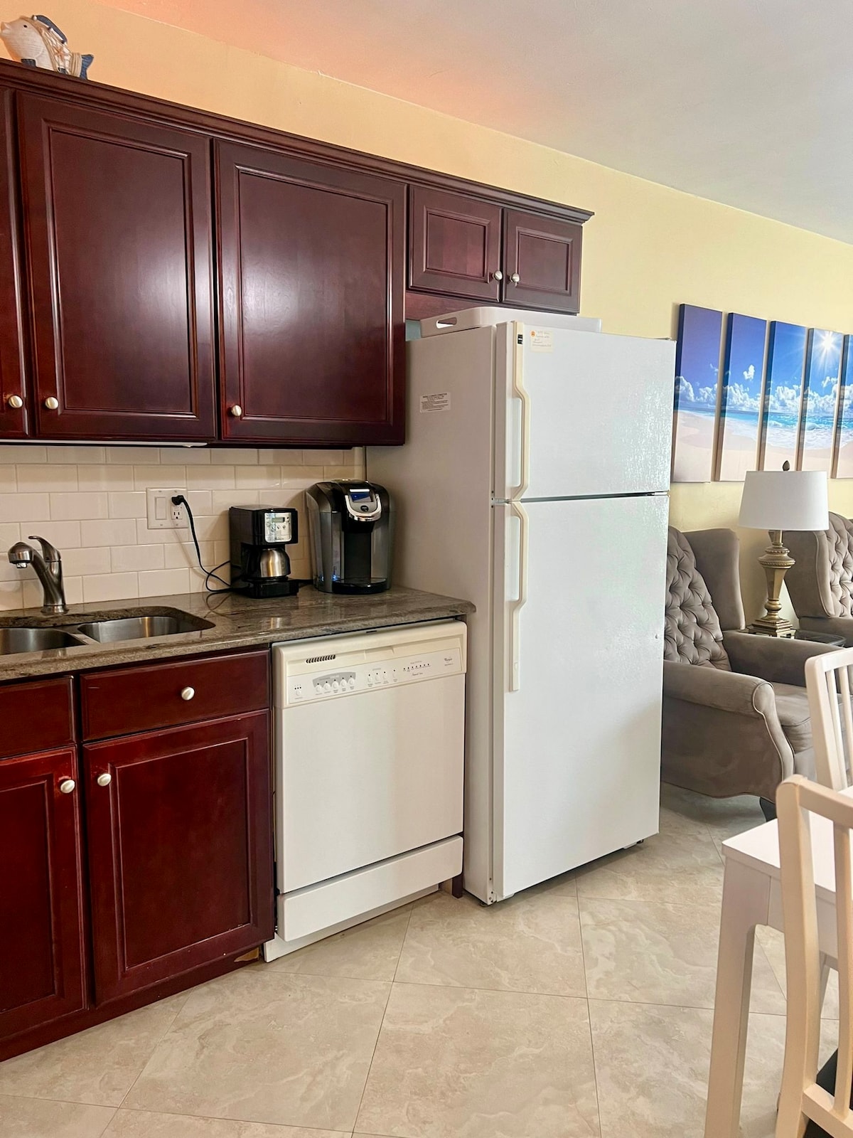 This stunning "Poinciana Getaway" is located just steps away from the beach and all its day and night life, restaurants shops and a grocery store (Publix), all within walking distance. This beautiful and comfortable 3/2 apartment is perfect for relaxing. Everything here is comfortability. The living room has a large 55" HDTV and fast WIFI. We are in a very beach, Family oriented and safe neighborhood. The apartment has a large shared pool area and also a shared coin laundry room