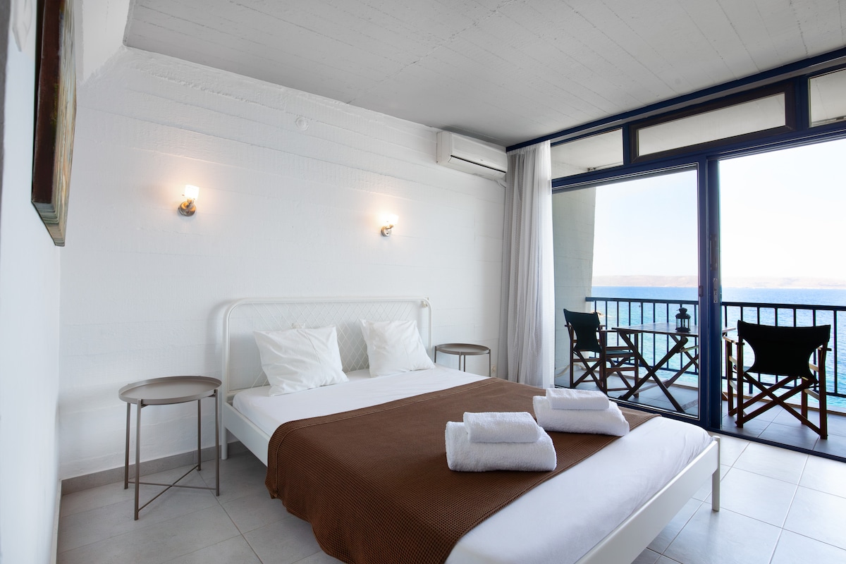 Sea Satin Sounio... A sea-front studio, renovated on 2022 and March 2023. Two small clean beaches, 08 & 20 meters from the house, and a large beach with sunbeds 100 metres from the house. Ideal choice for anyone who wants to spend a few days, literally a breath away from the sea House tangent to Punda Zeza beach. Access to the Temple of Poseidon in Sounio (6km), to Athens International Airport (30km), and to Athens historical city center (60km), with possibility of private pick-up arrangement