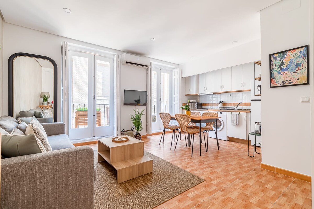 Apartment in the heart of Madrid, its location is ideal for discovering the city as it is located just 10 minutes from the main points of interest: Retiro Park, Puerta del Sol, Plaza Mayor, the alternative neighborhood of Lavapiés... The apartment is located in a quiet property where you can rest at night and recharge to make the most of the day. It has everything you need for your stay and a characteristic rustic style that makes it very warm and cozy.