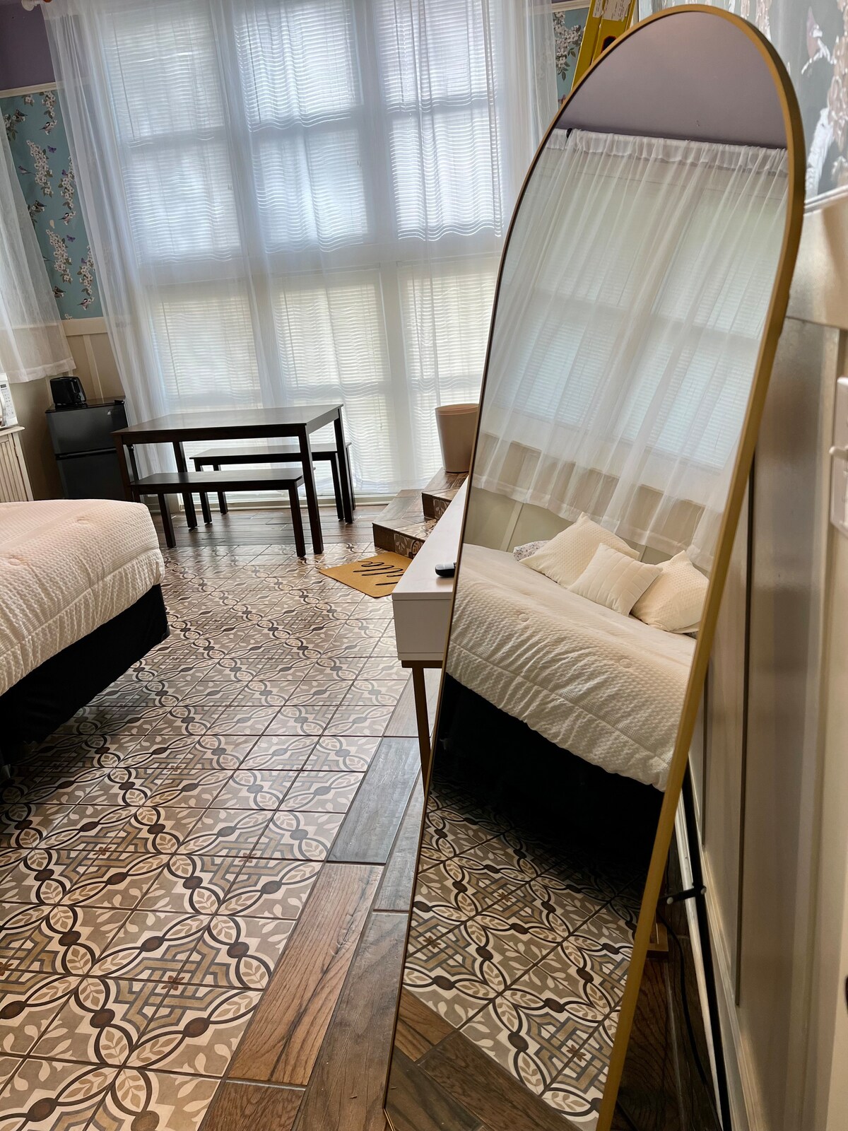 This freshly remodeled studio loft, with a private entrance, is located in north Spearfish near BHSU and the bike path. Here you'll find quick access to a variety of Black Hills adventures! The clean and open space features a queen-size bed, a full-size futon, air-conditioning, an inviting kitchenette with island (dishwasher, fridge, microwave, Keurig, toaster), and is a great spot for 2 adults, or 2 adults and 2 kids. Owners are long-time Spearfish/Black Hills residents (free advise!).