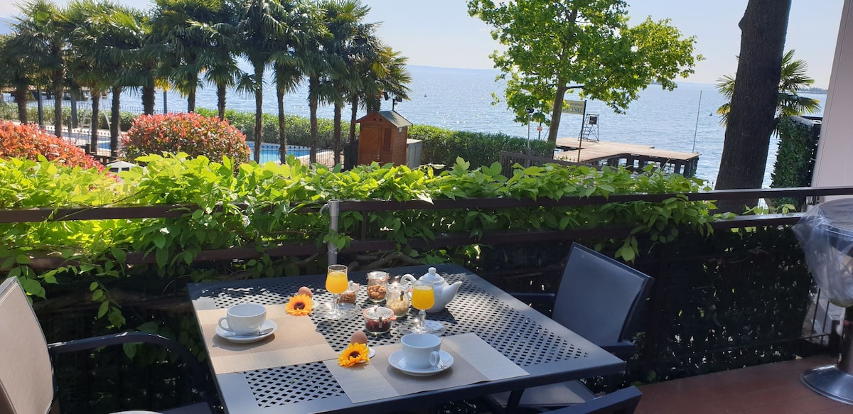 Cozy one-bedroom apartment directly on the lake, ideal for up to 4 guests. It features a double bedroom, bathroom, living room with sofa bed, a fully equipped kitchen with dishwasher, and a furnished terrace. Amenities include covered parking, heating, air conditioning, Wi-Fi, TV, and a safe. Perfect for a relaxing holiday with comfort and lake views.