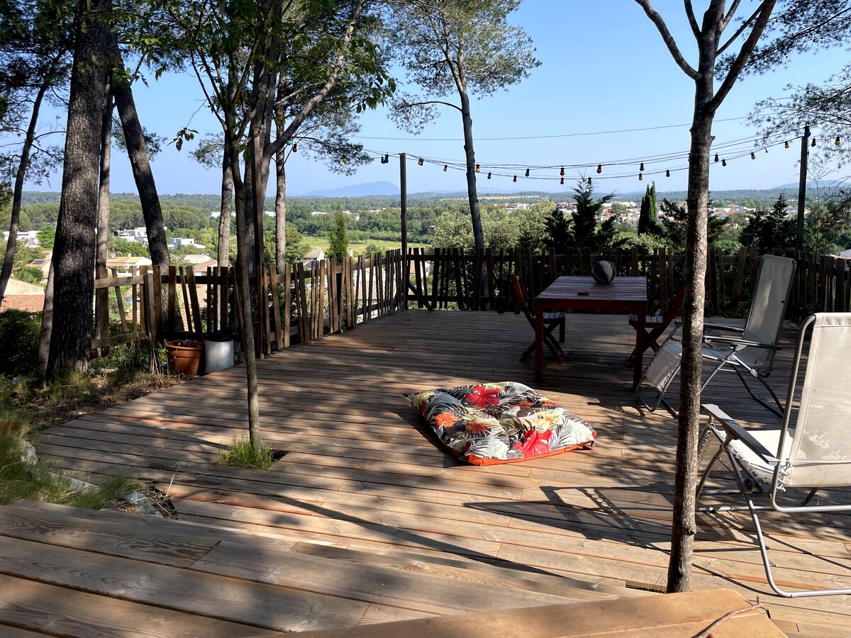 27 m2 outbuilding, like a master suite next to our villa. Shared pool with the house. Private entrance, no adjoining wall with the villa A terrace with table under the pergola is reserved for you. bed linens are available. This is not a studio, so there is no real kitchen or sink. However, the space at the back is equipped with a fridge/freezer, microwave, coffee machine, toaster, dishes. Sugar, tea, coffee capsules available.