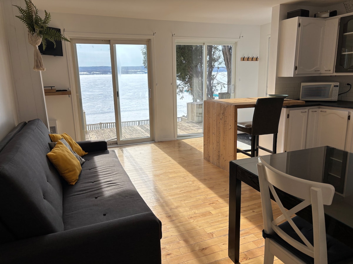 Luxury chalet, all seasons – Active since June 2020 on chalet for rent! Welcome to Domaine-Robertson, an exceptional chalet located on the shores of Lac Saint-Jean, perfect for up to 10 people (with the possibility of 2 more on the sofa bed). Offering modern comfort, high-end amenities, a covered terrace with patio heater and all amenities, this cottage is ideal for vacations for families or groups of friends, whatever the season.