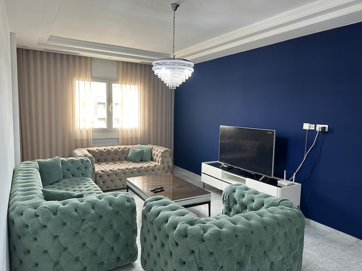 Welcome to Ideal Appart Green Touch, a luxury apartment located in Ain Zaghouan North, close to the northern suburbs of Tunis. Ideal for business travel or high-end stays, this modern, clean and secure home offers a fully equipped kitchen, stylish living room with Smart TV, fast wifi, air conditioning, and easy access to shopping malls and the airport.