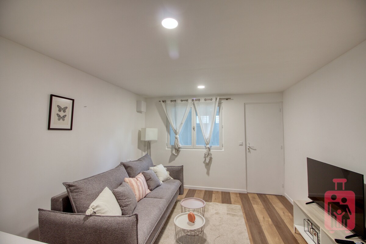 Guest House of 22 m² ideal for a short stay for 2 people or a couple with children. Independent entrance, very quiet area, located 10 min walk from the train station and with the possibility of parking nearby. Studio with a sofa bed for 2 people and a Mezzanine with another bed for 2 people, bathroom with toilet. Kitchenette: fridge/freezer, microwave, Tassimo, stove, dishes. No sink, we do your dishes! Equipped with a TV with some TNT channels.